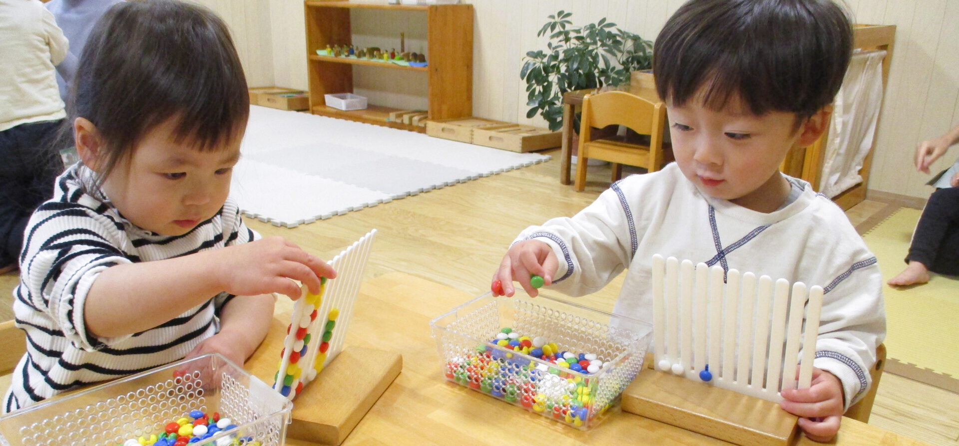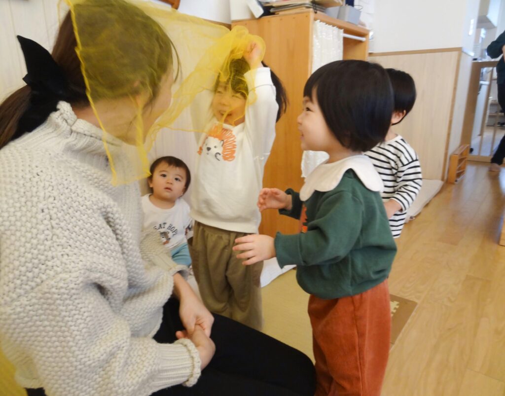 子どもたちは、生活する力、遊ぶ力、人と関わる力などその能力のほとんどを模倣することで身につけていきます。 異年齢児のいる空間の中で、年下児は年長児の姿を真似ることで、遊ぶ力を身につけます。年上児は年下児と接することで、本来もっているやさしさを発揮します。
